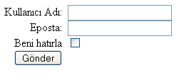 Bu tip küçük form sayfalarında tanım listelerinin(dl, dd ve dt) kullanılması düzen ve kullanım kolaylığı açısından çok önemlidir. <label> etiketinin kullanılması iki açıdan önemlidir. İlki küçük ekranlı araçlarda(cep telefonu,pda vb.) form elementlerinin kullanımını kolaylaştırır label/ID ilişkisi ile. İkinci olarak radyo buton ve işaret kutularında metin ile tümleşik hareket etmemizi sağlar, yani Beni hatırla metnine tıkladığımızda işret kutusu işlevi gösterir.