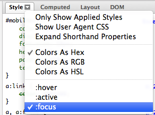 Daha önce :hover, :active gibi sözde sınıfları destekleyen Firebug şimdi :focus desteğini sağlayarak güzel bir özellik daha eklemiş bünyesine.