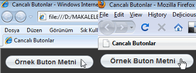 IE7 de buton üzerinde normal imleç görünürken Firefox ve diğer tarayıcılarda normal olarak el işareti görüntülenecektir.