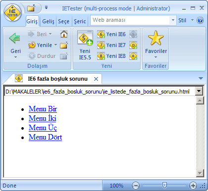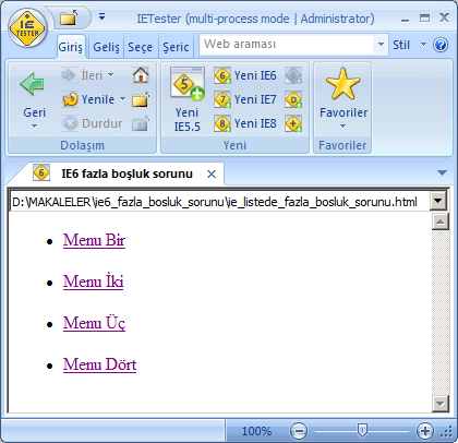 kodumuz olsun. Diğer tarayıcılarda normal bir görünüt alırken ie6'da liste öğeleri arasında fazladan boşluk görürüz.