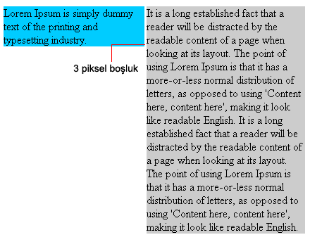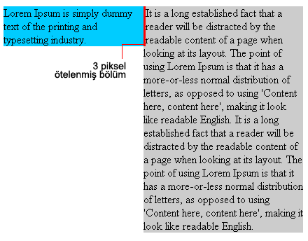 Başlangıç olarak değişen içeriğine göre yükselik alan metin alanına(sağdaki metin) müdahale edeceğiz. Görünüm olarak 3 piksellik boşluğu kaldırabiliriz. IE5-6 yükseklik tanımını min-height gibi yorumlar, elementin yüksekliğine küçük bir değer(height:1%) atadığımızda bu elementin boyutunu değiştirmeyecektir. Bu atama diğer web tarayıcılarını etkileyecektir bu nedenle diğer web tarayıcılarından bu kodu gizlemeliyiz.