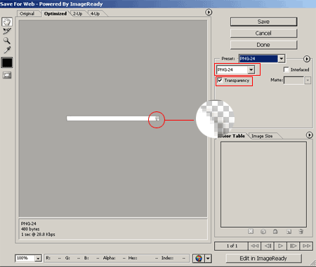 Kırmızı ile işaretlediğim ve resmi saran bir gri alan gibi saracaktır. Bunun anlamı bu tarayıcının saydam PNG desteğinin olmadığıdır. Bu sorunu gidermek için yukarıda bahsettiğimiz İnternet Explorer 6'nın desteklediği filter tekniği uygulayacağız.