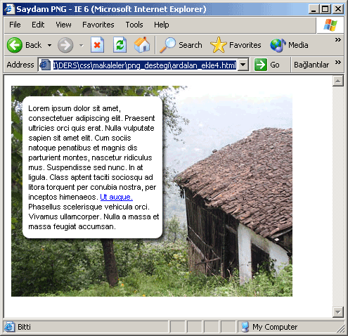 Buraya kadar her şey güzel görünsede Internet Explorer 6'da bu sayfaya baktığımızda işin rengi değişecektir.