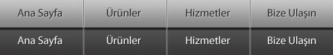 Menümüzün resimlerini tek bir resim dosyası olarak hazırlayacağız. Biz burada normal ve fare imleci üzerine geldiğindeki halini(:hover) koyduk ama bunlara seçili ve tıklama durumlarınıda eklenebilir.