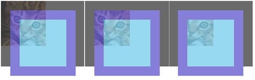 background-origin:border-box olarak tanımladığımızda background-clip özelliğini daha iyi anlarız. Her üç kutudaki farkları gördüğünüz gibi. Resim sırası ile border, padding ve içerik alanından kırpılmıştır.