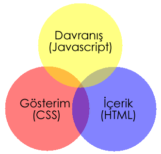Content katmanı Web sayfamızın içeriğini belirler. Web sayfamızda kullandığımız tüm yazılar, resimler, linkler, formlar vs. content kapsamında ele alınır. Content’i belirlemek için HTML kullanılır. Yani Web sayfamızdaki içeriği HTML ile belirtiyoruz. Bu içeriği kullanıcıya sunmak için presentation katmanı kullanılır. Bu katman ile Web sayfasında bulunan içeriği görsel olarak şekillendirip kullanıcıya sunarız. Bu sunumu gerçekleştirmek için CSS kullanılır ve son olarak behavior katmanı ise Web sayfamızın davranışını belirler. Sayfamızda bulunan olaylar, tetiklemeler, işlemler vs. davranış kapsamında ele alınır ve sayfanın davranışını belirlemek için JavaScript kullanılır.