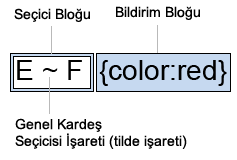 CSS2.1 ile birlikte gelen bitiş kardeş seçicilerine benzer bir seçicidir. Bitişik kardeş seçicisine göre daha seçici ve kullanışlı bir seçicidir. Aynı kapsayıcıya sahip elemanların belirtilen elemandan sonraki aynı seviyedeki elemanların tümünü yakalamak için kullanılır. Burada dikkat edilmesi gereken konu belirtilen elemandan sonraki aynı seviyedeki elemanları seçiyor olması. Tanımlama yaparken araya işaret olarak tilde(~) koyuyoru