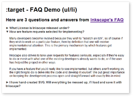 {% highlight css %} #faq > li:target > div{ display:block; } {% endhighlight %}