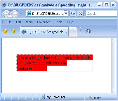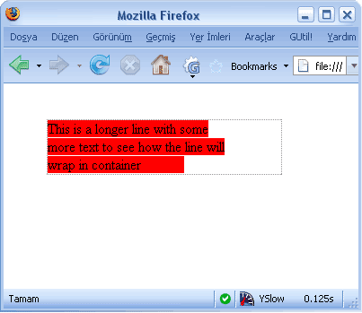 <div id="kapsul"><span id="metin">This is a longer line with some more text to see how the line will wrap in container</span> </div>