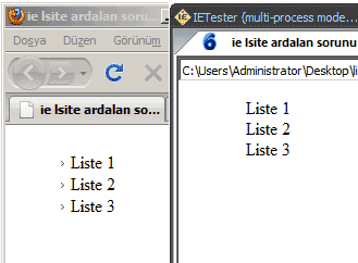Çözüm ise çok basit. Ardalan resmi uyguladığımız liste öğesine postion:relative tanımı yapıyoruz ve bu kadar düzeliyor.