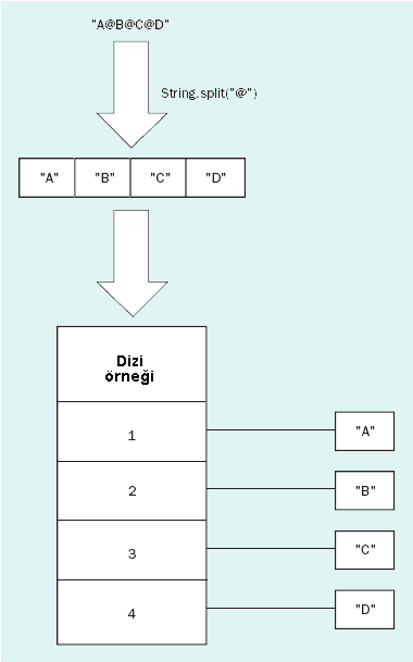 Split metodu, uygulandığı string'i parçalara böler ve bu parçaları bir diziye(array) atar.