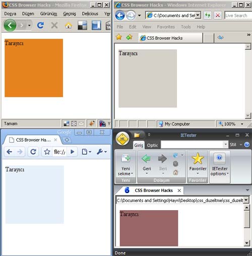 Aynı XHTML kodu için aşağıdaki gibi farklı tarayıcılarda farklı sonuçları alırız.
